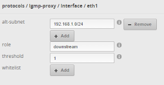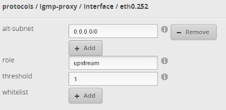 DeleteThanks, yes, that makes sense. For the testing purposes, I've started with no firewall on eth0.6 (iptv come on vlan6 in my case), but unfortunately the STB says that the service is not available in this network. Not sure what's the problem, but someone suggested that I may need to use policy based routing or load balancing to force all STB traffic through eth0.6, although I don't really know how to do that. Also, there seems to be some issues with ER-X and igmp-proxy needing restart.. It's not as simple as I thought it would be. I'm now using a VLAN aware solution, but I don't really like it.